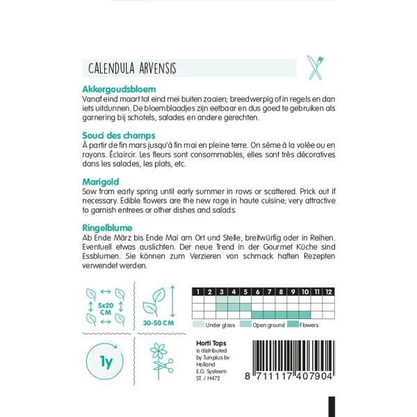 Prachtige goudsbloem met eetbare bloemblaadjes. Mooi en decoratief om te gebruiken als garnering bij schotels, salades en andere gerechten.