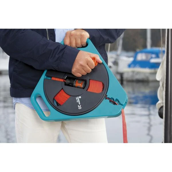 Door het geringe gewicht en de compacte vorm is de GARDENA Classic roll-fix in cassette ideaal om te vervoeren. De platte waterslang kan worden uitgerold tot 20 meter. Dat betekent dat deze, als hij niet wordt gebruikt, plat en eenvoudig kan worden opgeborgen in de slangcassette.