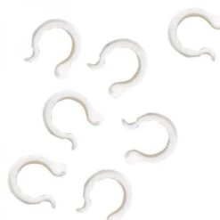 Stevige kunststof klemmen voor het vastzetten van folie, insectengaas, weringsnet of zeil aan buisvormige structuren.