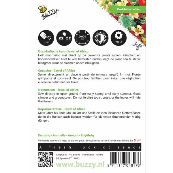 De Tropaeolum majus Jewel of Africa heeft prachtige witgemarmerde bladeren die de plant nog attractiever maken