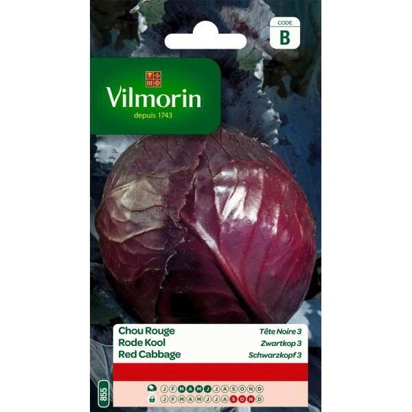 Deze klassieke variëteit Rode Kool Zwartkop 3 vormt middelgrote en zeer vaste kroppen met een donkerrode kleur. Goede variëteit met een uitgesproken maar aangename smaak.