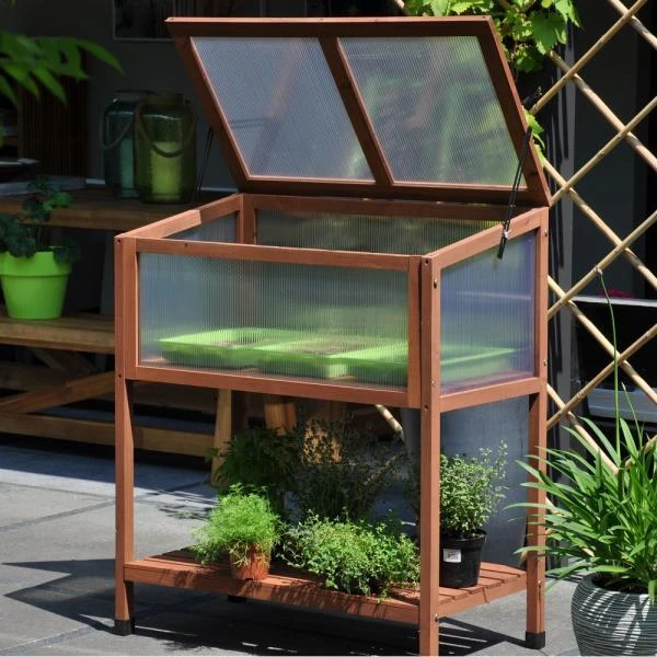 De Red Leaf is de eerste verhoogde kweekbak binnen het assortiment van Royal Well. Hij bestaat uit een houten frame en een afdichting met 4 mm polycarbonaat.