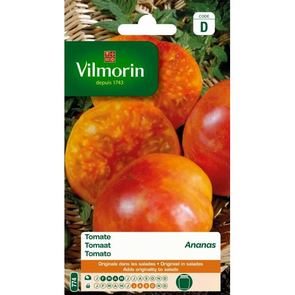 De originele variëteit Tomaat Ananas vormt geel – rood gestreepte vruchten. Ze zijn geparfumeerd en hebben een licht zure smaak.