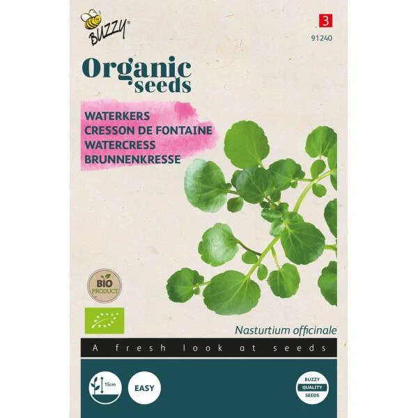 Kweek zelf je groenten met biologisch SKAL gekeurde zaden. Het verse blad van waterkers heeft een pittige smaak en is lekker in een slamix en bij vleesgerechten.